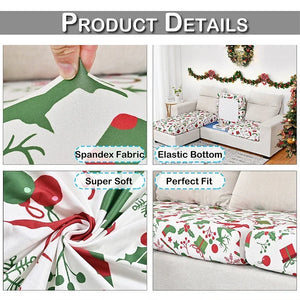 1/2/3/4 Seat Christmas Cartoon Print Sofa Seat Cover Elastic Non-slip Sofa Cushion Dust Protection Cover Home Holiday Decoration