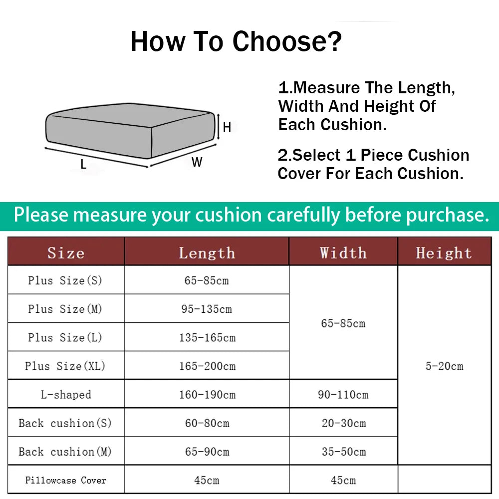 How To Choose? ?????1.Measure The Length Width And Height Of Each Cushion. 2.Select 1 Piece Cushion Cover For Each Cushion.