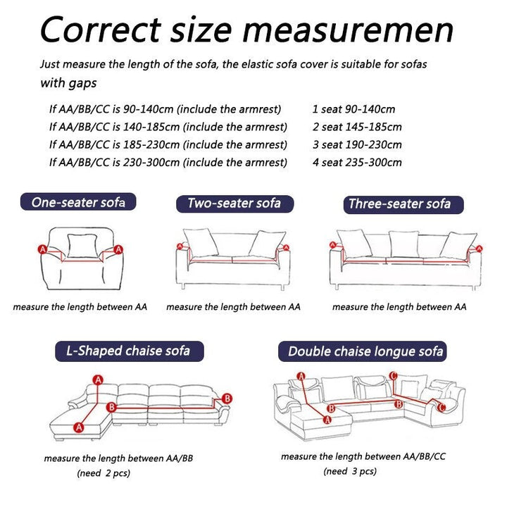 We totally have 4 sizes to choose,please check the right size of your sofa,if you don't know how to choose the right size,you can follow below 'size measurement in the picture below to measure or tell us your sofa size,We will recommend the size of the sofa cover to you according to your size.