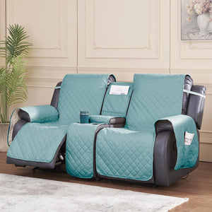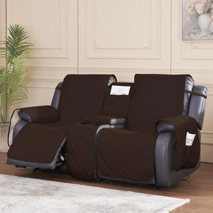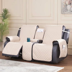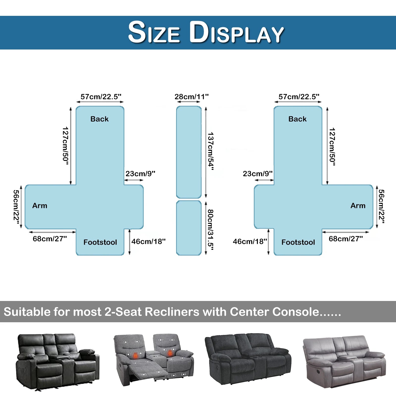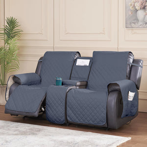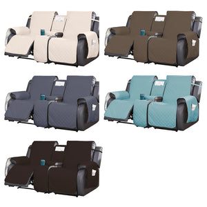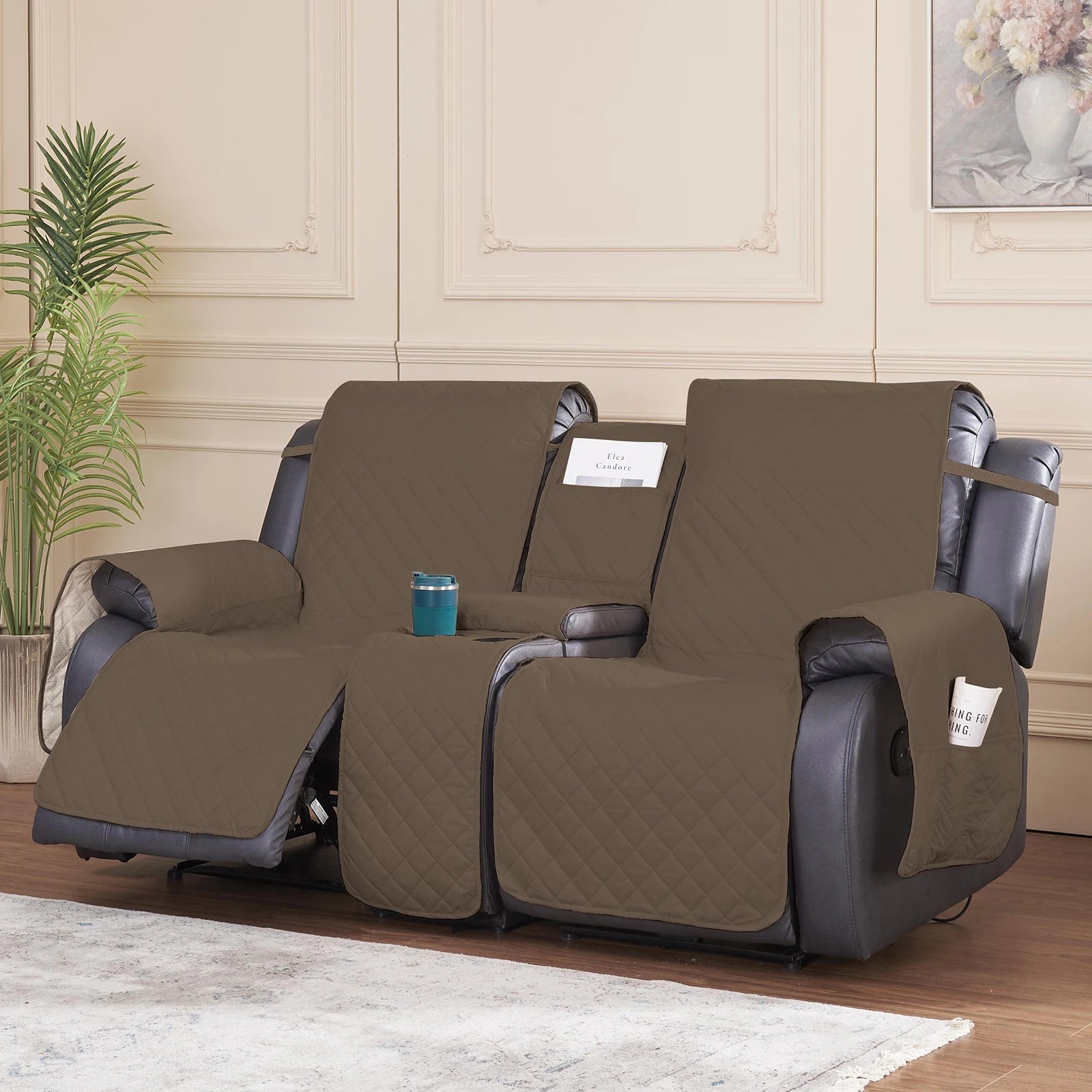 Home 2 Seater Waterproof Quilted Recliner Slipcovers W Center Console Cover Storage Arm Sofa Chair Covers Pet Anti Slip Mat Protector