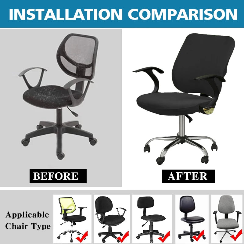 Enhance the look and function of your office chairs with our 2pcs/set Split Office Chair Covers. Made with elastic fabric, these covers easily slip on and provide a snug fit for chairs with a lift and rotation mechanism. Protect your furniture while adding a touch of style.