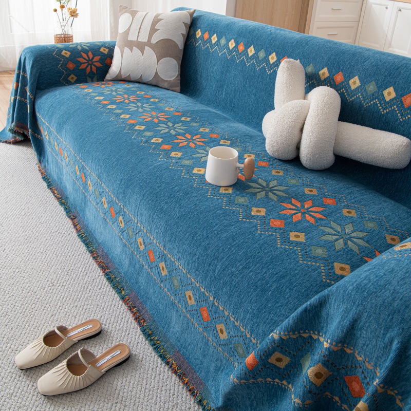 Bohemian Chenille Sofa Cover Throw Set - Cat-Scratch Resistant Non-Slip All-Season Cushion & Throw