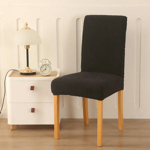 Transform the look of your dining room or event with our Jacquard Chair Covers. Made with stretchy, thick fabric, these slipcovers provide a snug fit for any chair. Perfect for adding an elegant touch to your home or impressing guests at an event.