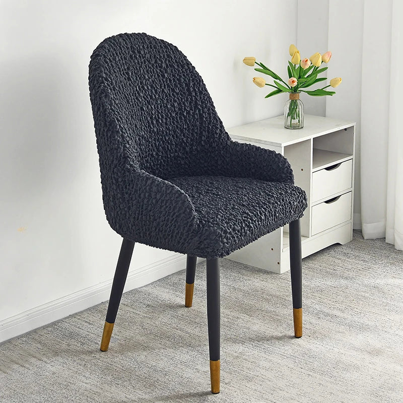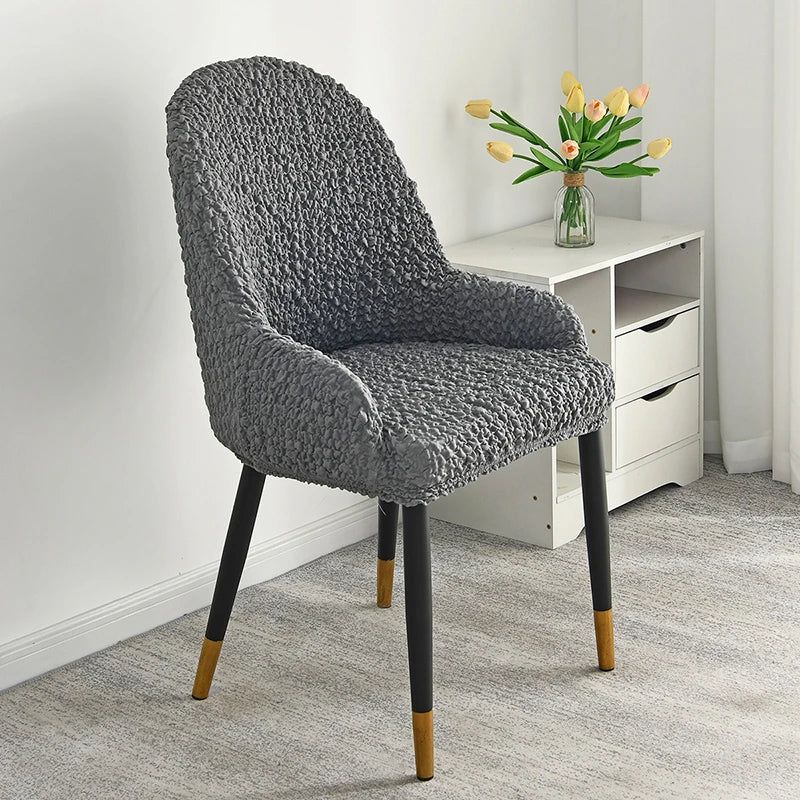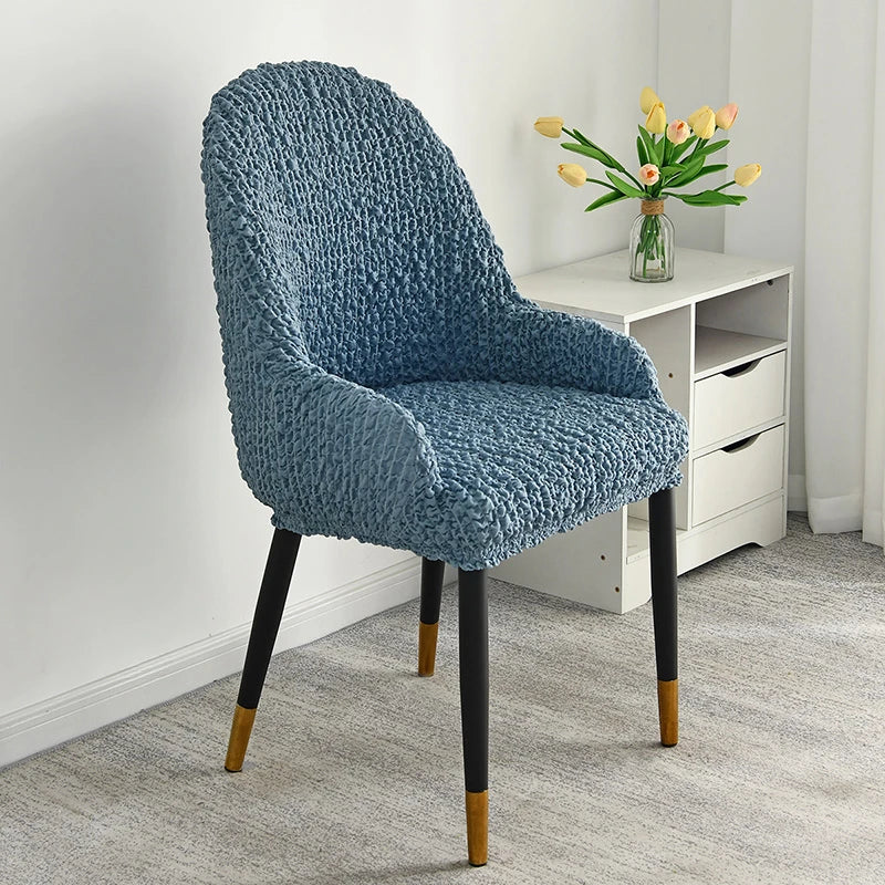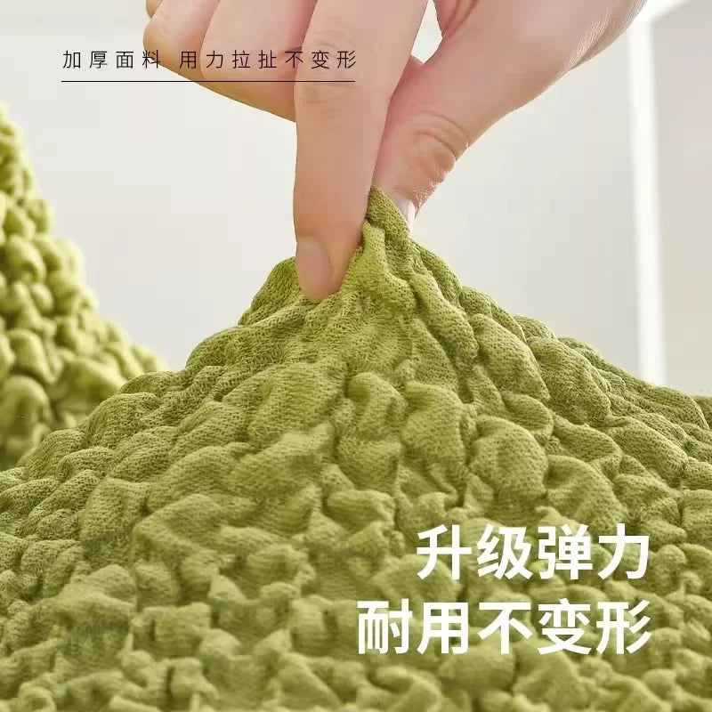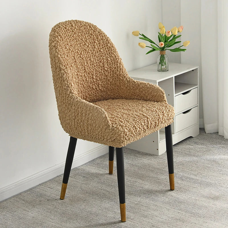 Home Chair Covers with Armrest Cream Wrinkled Fabric Stool Cover Elastic Household Dining Chair Universal Backrest All in One