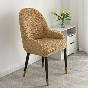 Protect your dining chair and give it a new look with our Chair Cover. Made of cream wrinkled fabric, it fits most armrest chairs and has an elastic design for a secure fit. Keep your chairs looking brand new with this all-in-one cover.