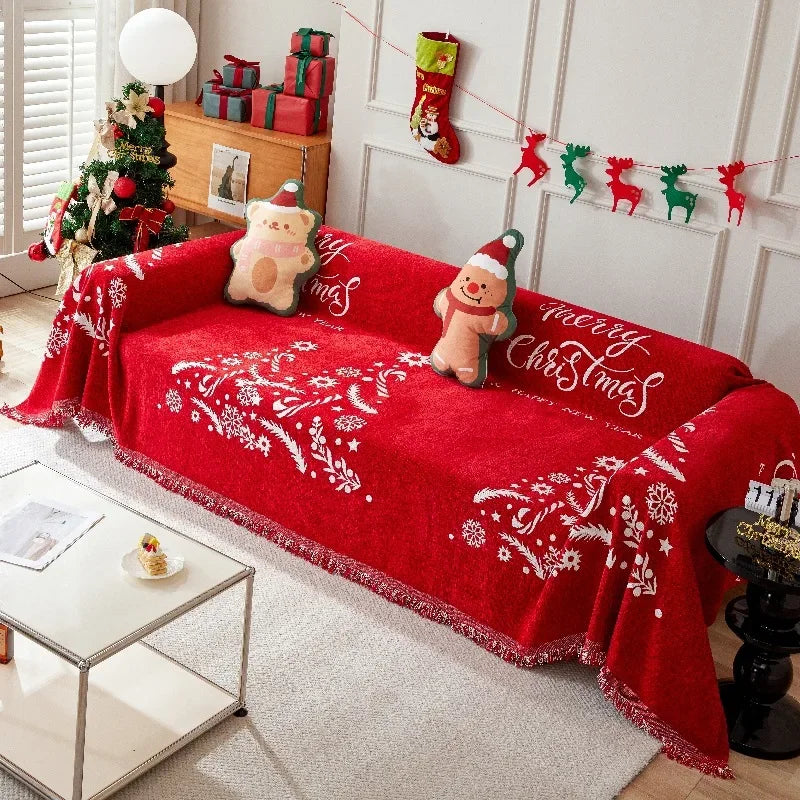 Chenille Antifouling Jacquard Christmas Sofa Throw Cover Festival Sofa Towel Cover Four Seasons Universal Dust Proof Sofa Blanket Covers