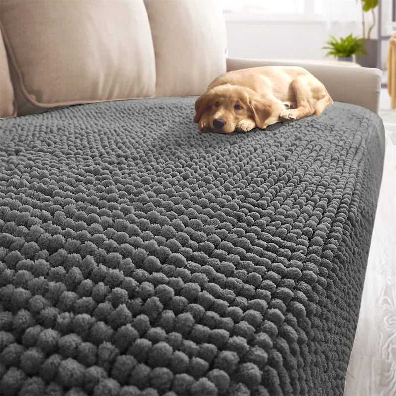 This Chenille Sofa Cover is the perfect addition to protect your sofa from pets and scratches. Made with anti-slip material, it provides a secure fit and stays in place. Thick and durable, it also doubles as a cozy couch mat for your furry friends. Enjoy peace of mind and a stylish look with this versatile sofa cover.