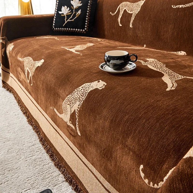 Chenille Sofa Throws Leopard Animal Anti Cat Scratch Furniture Protector Bedspread Couch Towel Full Cover Blanket Seater Sofa