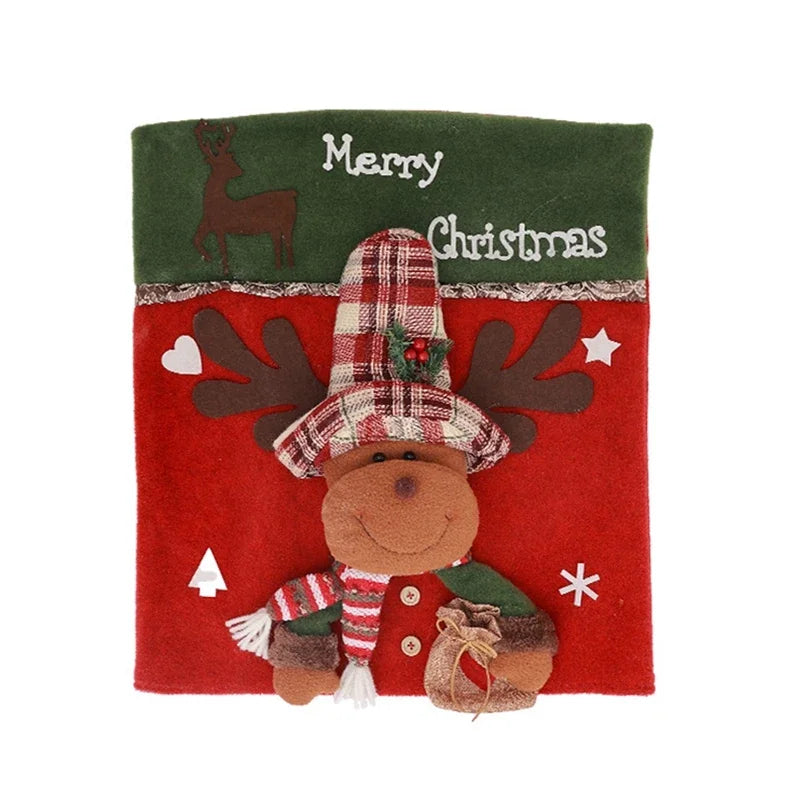 Home Christmas Chair Cover Cute Santa Clause Deer Snowman Chair Back Cover Holiday Home Decor