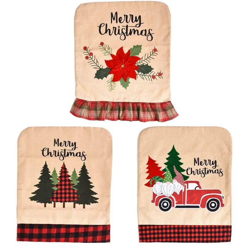 Christmas Chair Covers Creative Cartoon Linen Santa Snowman Stool Cover Room Seat Cover for Kitchen Xmas Decoration