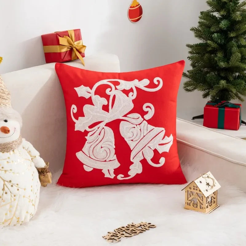 Christmas Pillow Cover Decorative Santa Claus Cartoon Printed Embroidered Pillow Cushion Cover Home Sofa Xmas Cushion Cover