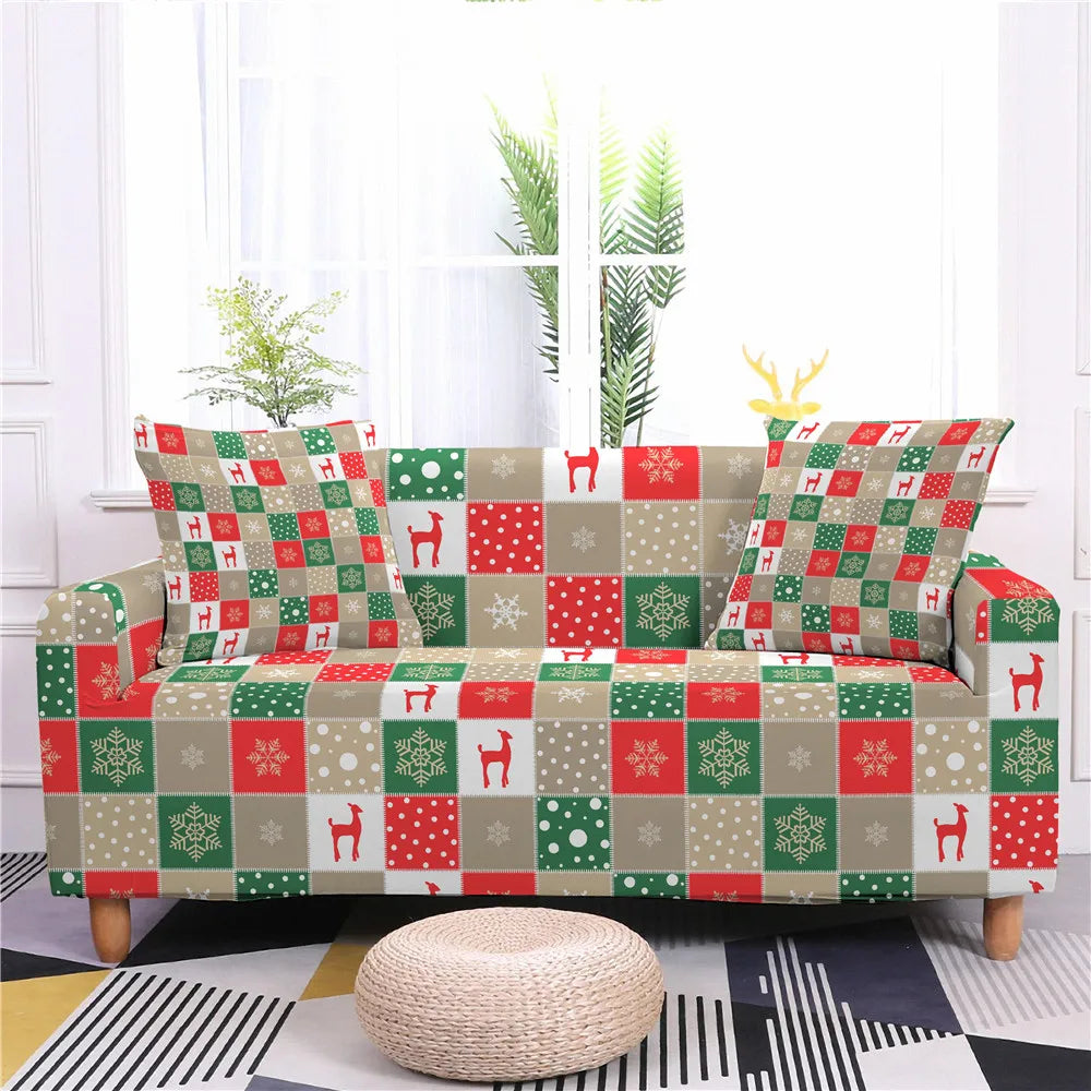 Christmas Style Elastic Sofa Cover for Living Room Sectional Armchair  Stretch Couch Cover Slipcover 1/2/3/4 Seater Sofas Covers