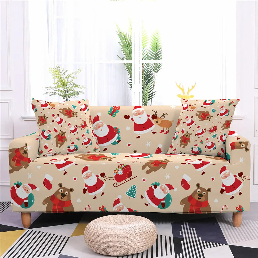 Christmas Sofa Covers for Living Room Sectional Armchair Stretch Couch Cover Slipcover 1/2/3/4 Seater Sofas Cover