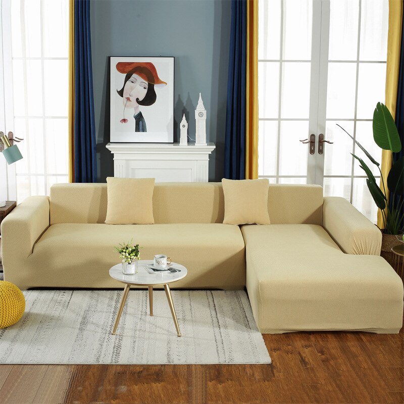 Elastic Polar Fleece L Shape Sofa Covers Jacquard Corner Couch Cover for Living Room Chaise Lounge Stretch Armchair Couch Slipcover