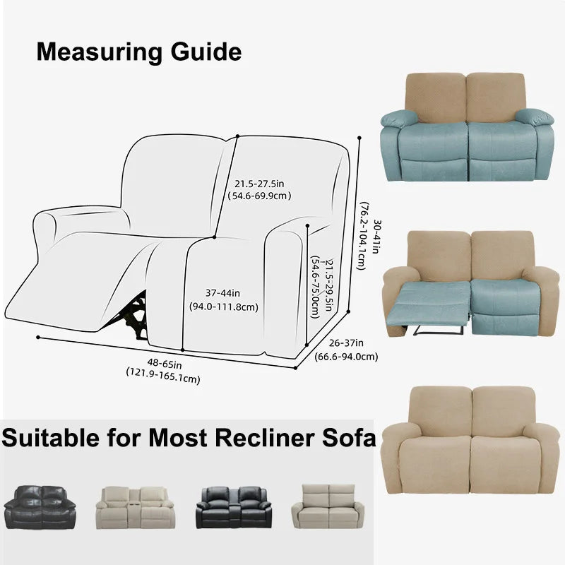 Our Elastic Recliner Sofa Covers are designed to effortlessly stretch over recliner sofas of 1 or 2 seaters. Constructed from jacquard fabric with a spandex blend, these furniture covers provide a tailored fit while maintaining durability and comfort. Our slipcovers are perfect for keeping your furniture safe from spills, wear, and tear. The Elastic Recliner Sofa Covers provide superior protection for your furniture without compromising on comfort or style. With a tailored fit, they offer long-lasting durability and are perfect for avoiding everyday wear and tear.