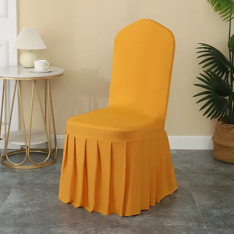 Home Elastic Stretch Luxury Wedding Chair Covers Party Decoration Spandex With Skirt Pleated Use Dining Birthday Hotel Banquet