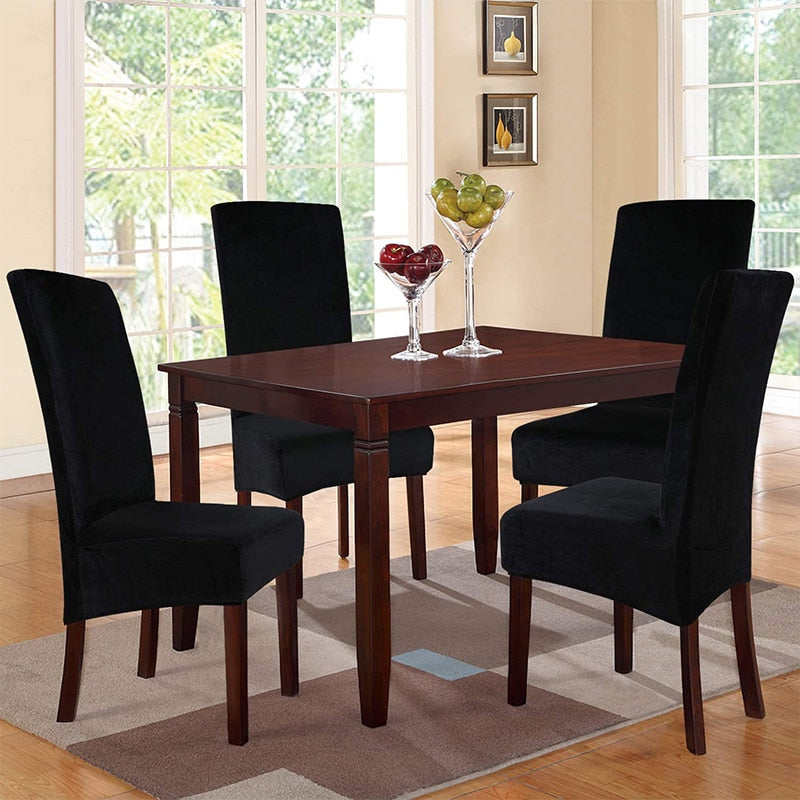 REAL VELVET: Velvet! Velvet! Velvet! These premium form-fitting dining chair covers are crafted from super rich velvet fabric, feature two-way high stretchy and luxurious, feel smooth, durable, make your room more tidy and beautiful, gives your old, damaged chairs a brand new look. Recommended for dining room, home, hotel, wedding banquet, dinner, meeting, celebration, ceremony