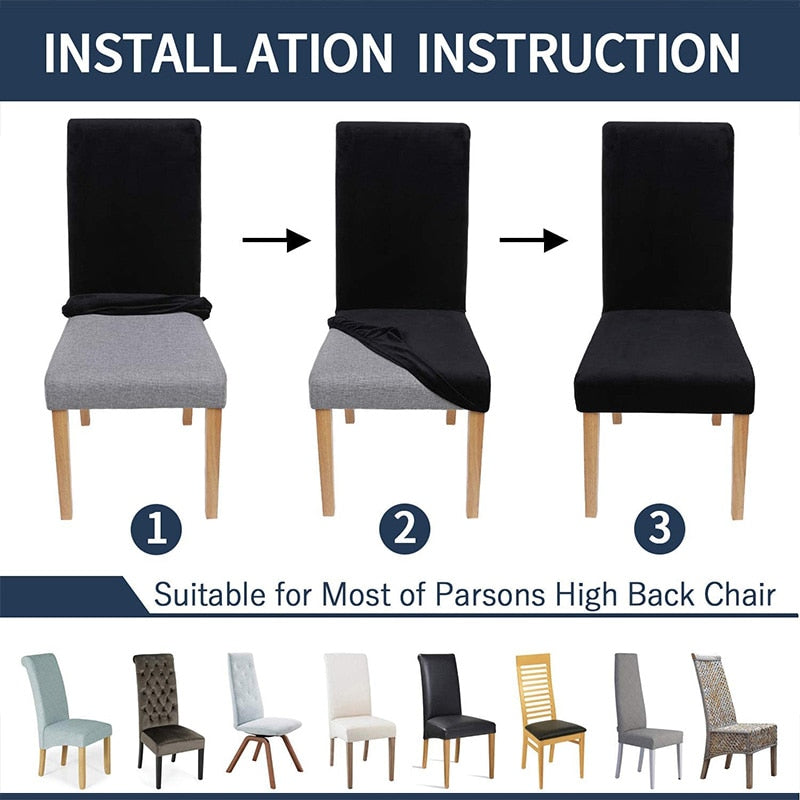 Extra Large Velvet Chair Covers Dining Room Elastic Stretch Case for Chairs Spandex Long Back Chair Slipcover Kitchen Banquet
