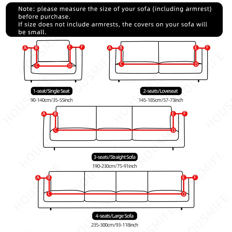 2. Please measure your sofa include armrest,then choose the size,if you don't measure it,the sofa cover will be smaller than your sofa.