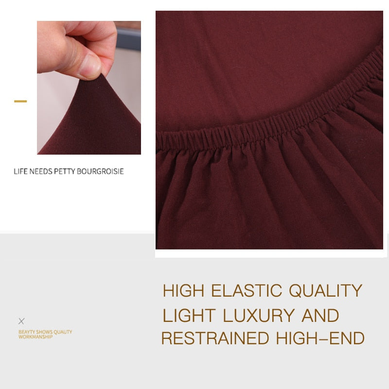 MATERIAL& DESIGN: Polyester and spandex fabric. All rounds without corners wrapped, not easy to wrinkle; elastic band and strap fastening closure at the bottom, double reinforcement, not easy to displacement.