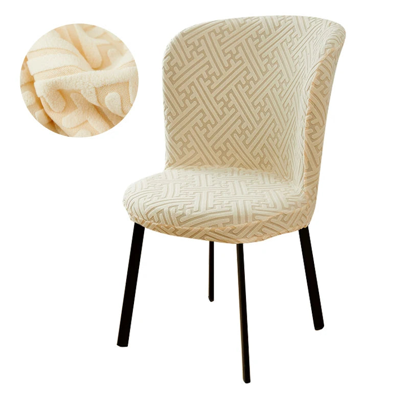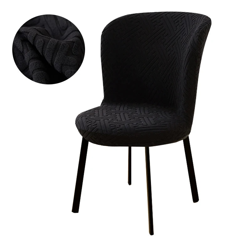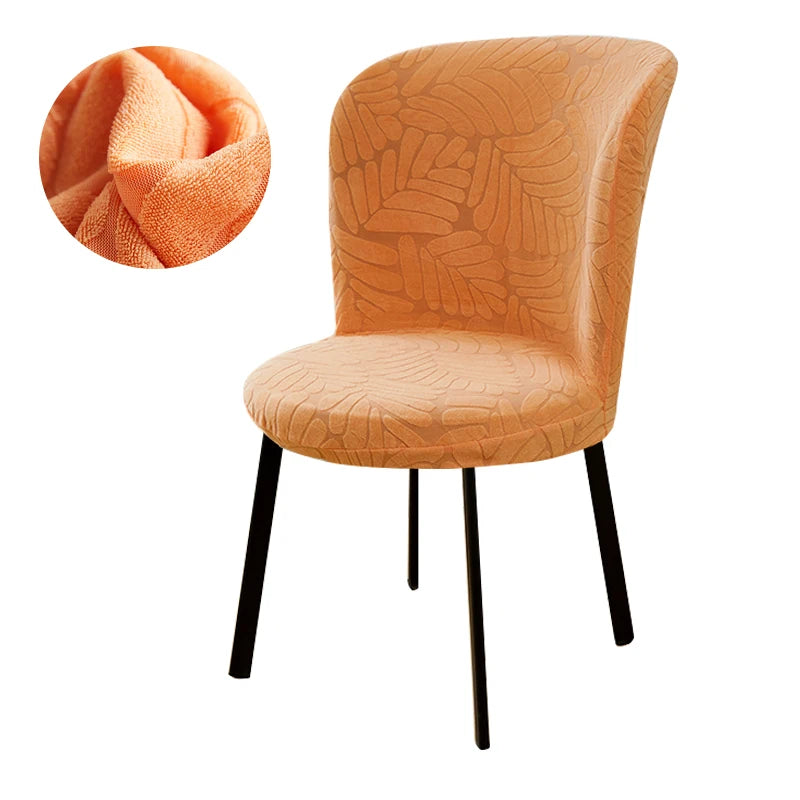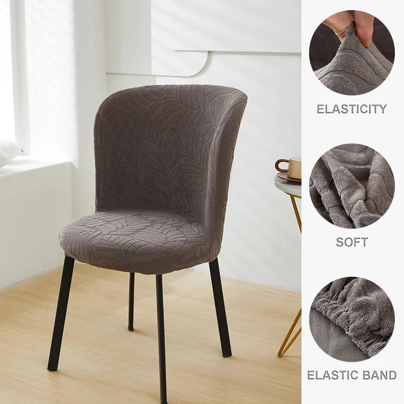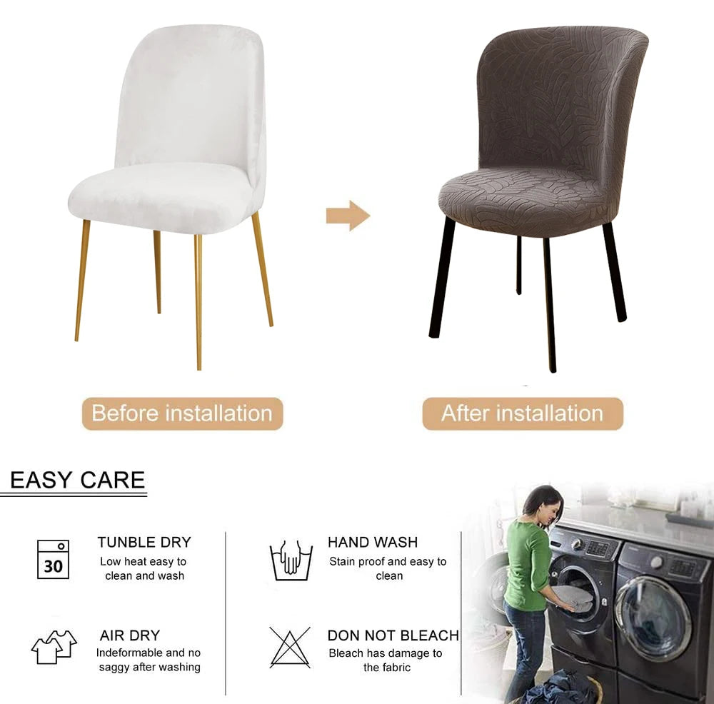 The Jacquard Arc Shape Chair Cover is the perfect solution for adding both style and practicality to your dining room or office. Its unique arc shape and stretch design make it perfect for curved dining chairs, while also providing protection against dirt and stains. Elevate any occasion, whether it's at home or in a professional setting, with this versatile and elegant slipcover.