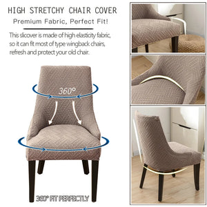 Home Jacquard Sloping Back Chair Cover Stretch Dining Chairs Slipcovers Chair Covers Soild Color Curved Chair Covers for Home Hotel