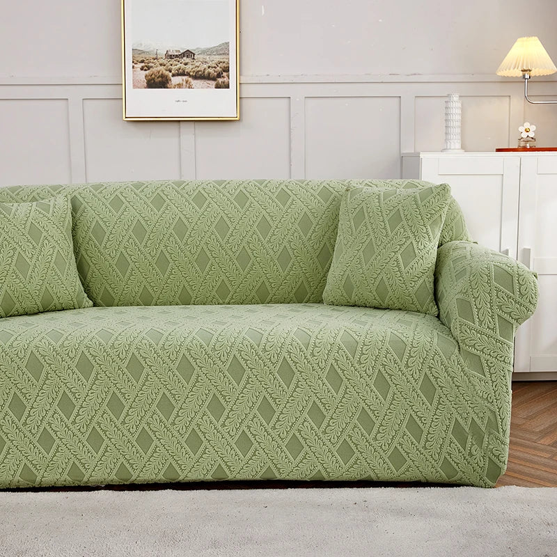 This Jacquard Sofa Cover is perfect for adding a touch of style and sophistication to living room furniture. The cross patterned fabric is stretchy and easy to fit, suitable for sectional and non-sectional couches. Upgrade the look of your sofa today!