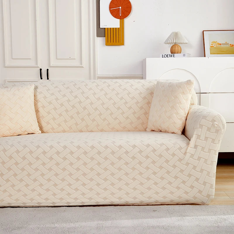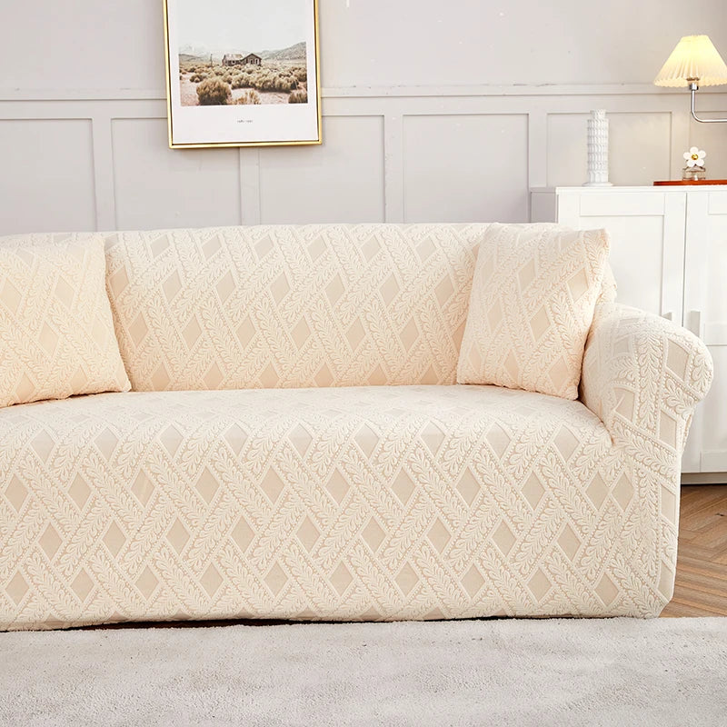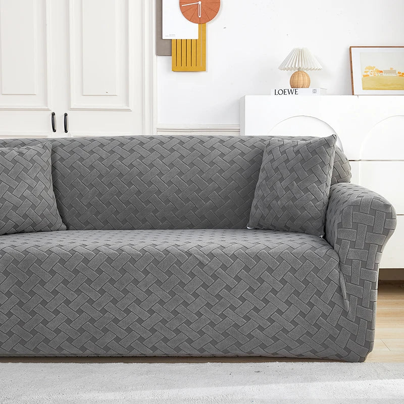 Enhance your living room's aesthetic with our luxurious Jacquard Sofa Cover, designed with a sophisticated cross pattern. This stretch couch cover offers a perfect fit for sectional sofas, transforming your living space with its elegant design. It's not just about aesthetics¡ªthis cover also provides excellent protection for your furniture against daily wear and spills. Dive into our wide range of sofa covers UK to discover the perfect style for your home.