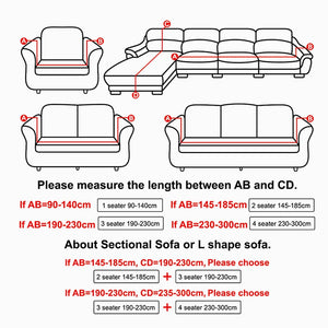Measure the length between A to B , then choose the correct option. For example,if the length of A-B is 170cm, you need to choose the option 2seater 145-190cm. ¡¤ 1-seater, length of the sofa should be within 90-140 cm ¡¤ 2-seater, length of the sofa should be within 145-190 cm ¡¤ 3-seater, Length of the sofa should be 195-230 cm ¡¤ 4-seater, length of the sofa should be 235-300 cm Kindly measure the size of your sofa carefully. Take account of the armrests too. If you do not take the armrests into account, the sofa cover might not fit on your sofa