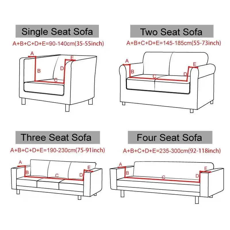 The elastic couch covers are suitable for most types of sofas. 360 degrees Full coverage. Our stretchy couch slipcover protect your sofa from dirt, pet hair, claws, wear and tear. It can extend the useful life of your couch, and easy to care while making it seem new sofa.It's great for families with kids, cats and dogs or for anyone seeking an economical solution for furniture protection.Decorate your house with distinctive couch furniture, fresh hues, and other new features. Get one piece for Christmas, Halloween,birthdays, and other festivals.