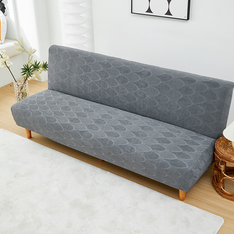 Kamandi Solid Color Stretch Armless Sofa Bed Cover, Full Coverage Jacquard Velvet Lazy Sofa Slipcover with Foldable Design
