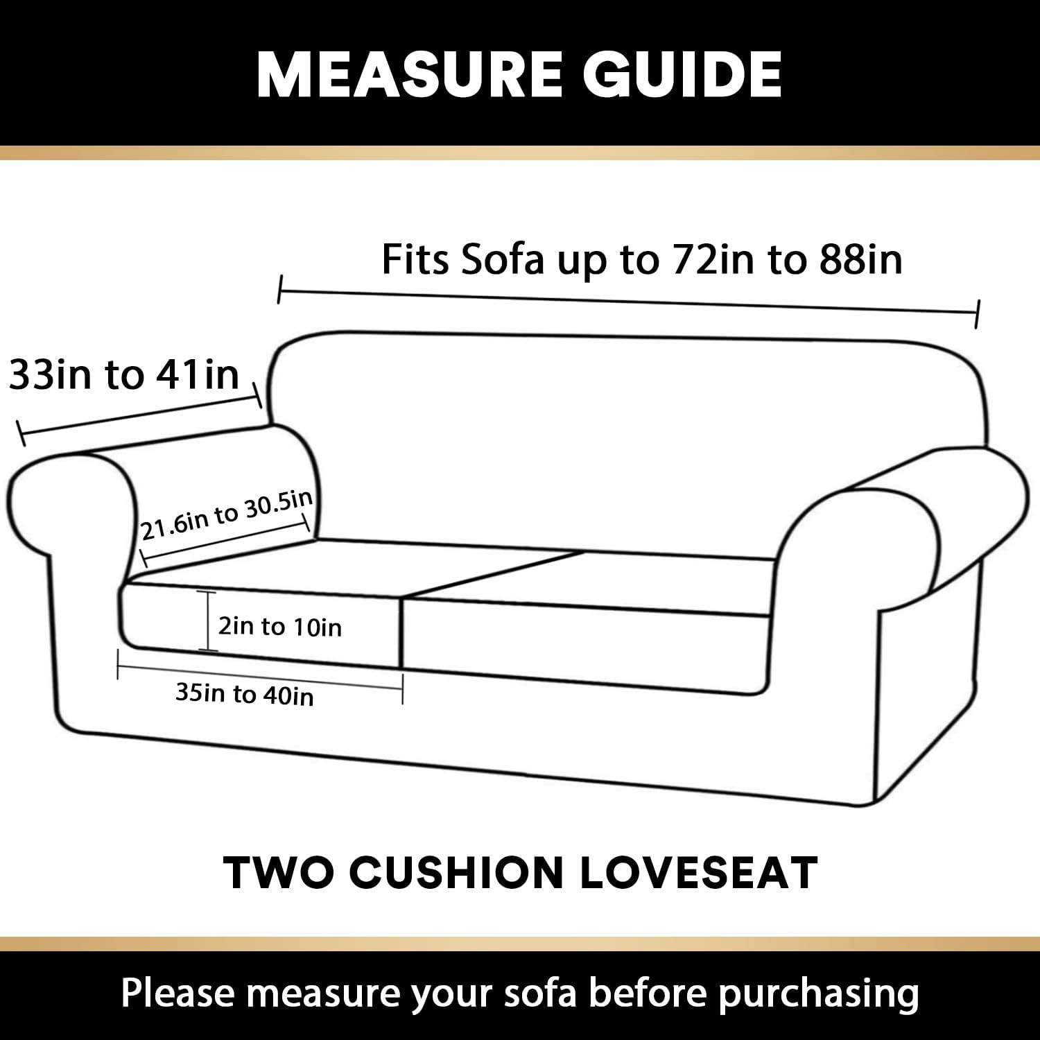 • Medium Large two cushion loveseat cover fits the width (outside arm to outside arm) 72-90 inch