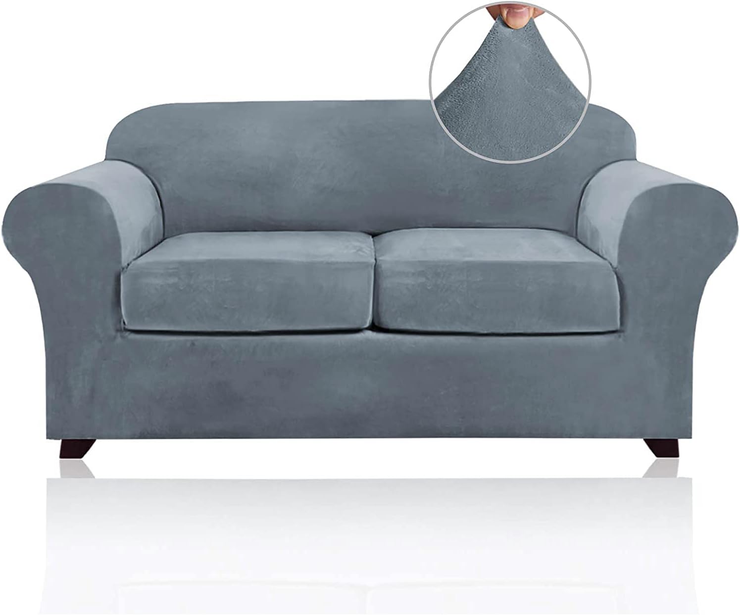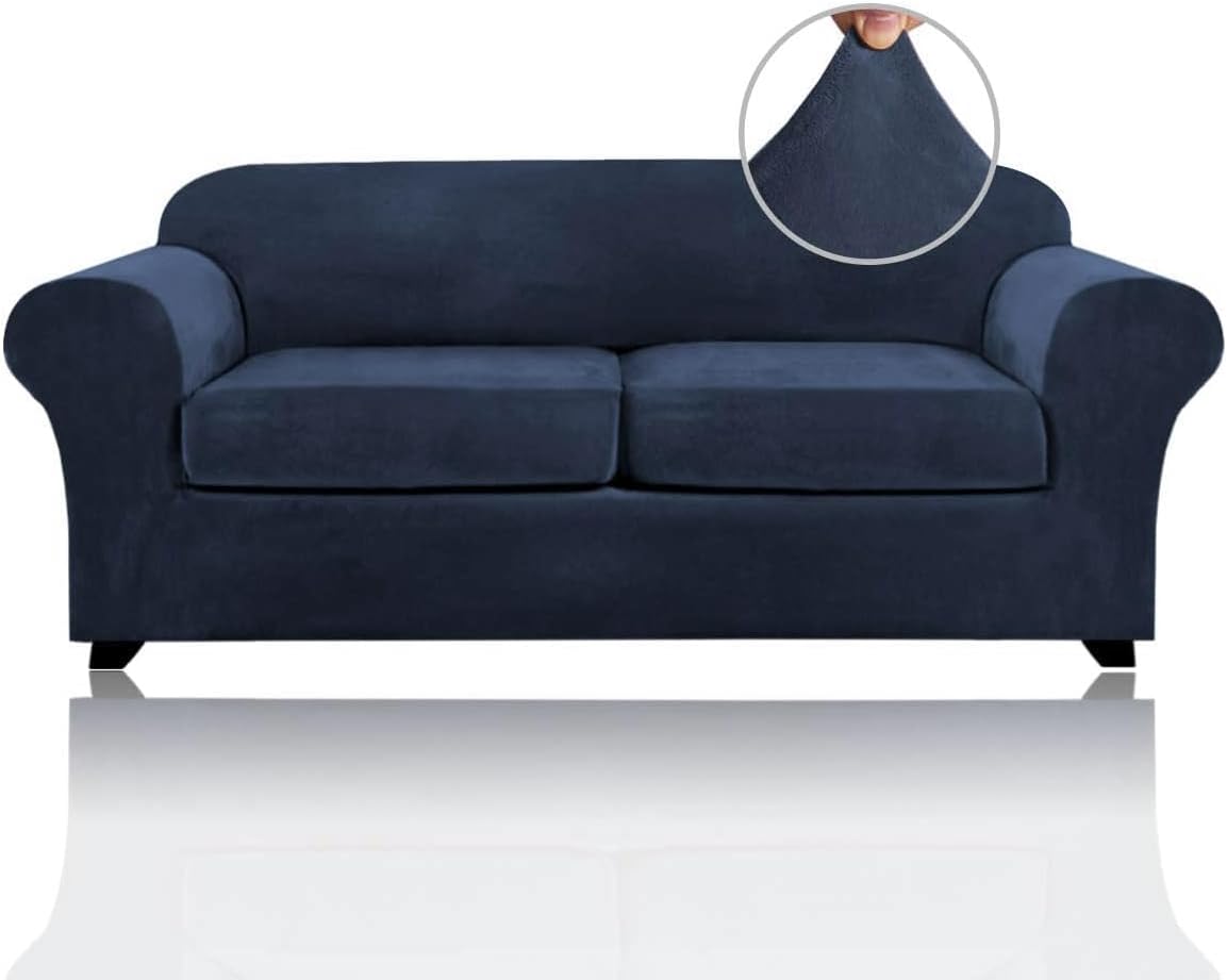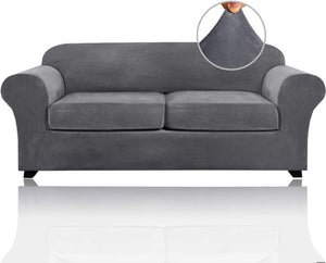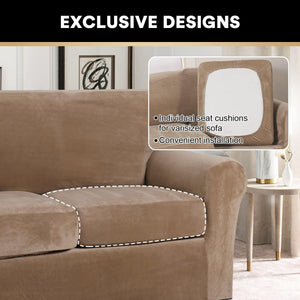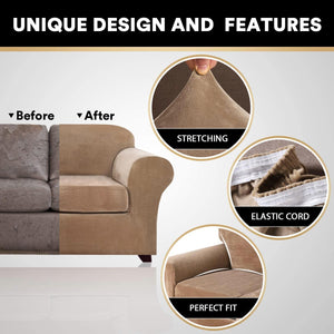 This cozy and soft Velvet Plush sofa covers (base cover and individual seat cushions covers are included) can give your living room a warm and decent look while protecting your furniture from pet hair, spills of everyday living. Our velvet furniture slipcovers are designed and ready-made to fit a variety of leather and cloth furniture. Crafted from ultra soft and gentle velvet fabric, rich, soft, thick and comfortable.