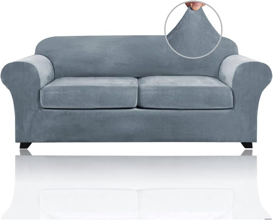 Luxury Stretch Velvet Sofa Covers for 3 Cushion Sofa Slipcovers Soft Sofa Slip Covers Furniture Covers with Seat Cushion Covers