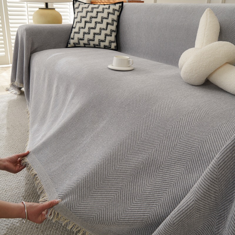 New Herringbone Sofa Throws & Cushion Set, All-Season Full-Coverage Reversible Sofa Protector Blanket