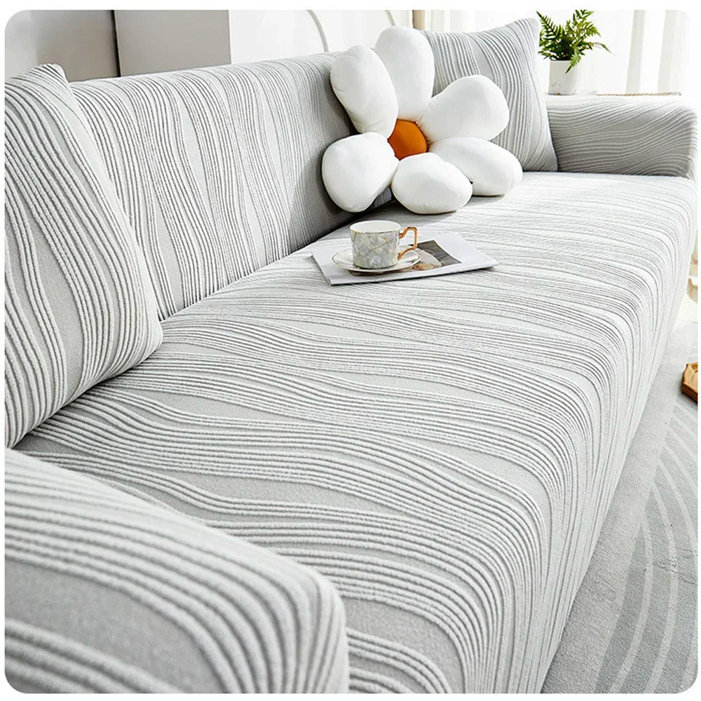 Upgrade your living room with our New High Elasticity Jacquard Sofa Cover. Made with high elasticity jacquard fabric, this slipcover is adjustable and non-slip, perfectly fitting any sofa in your home. Bring style and protection to your furniture with our functional and durable sofa cover.