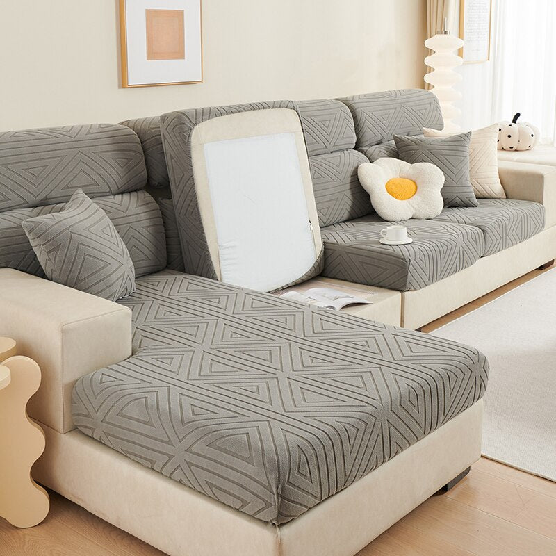 Give your sofa a modern and refreshed look with this Jacquard Sofa Seat Cushion Cover. Stretchy and thickened to fit any size, the slipcover offers a secure yet comfortable fit for your sectional corner sofa. With a texture that's durable and easy to clean, upgrade the look of your living room in a matter of minutes.