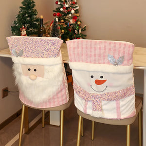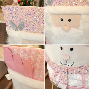 Pink Christmas Chair Cover Dust Cover For Home Party Dining Chair With Cartoon Image Christmas Party Decorations