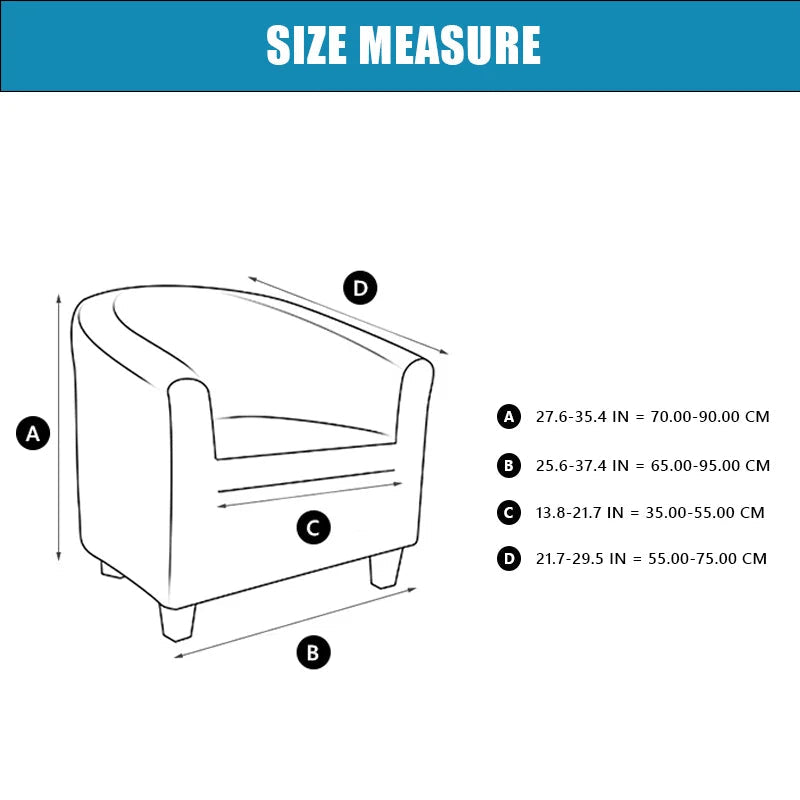 Chair Height 70-90 cm,Seat Length: 30-40 cm.Seat Width: 55-75 cm.Please refer to the product size chart. Then, measure your tub chair prior to purchasing to ensure the best fit.