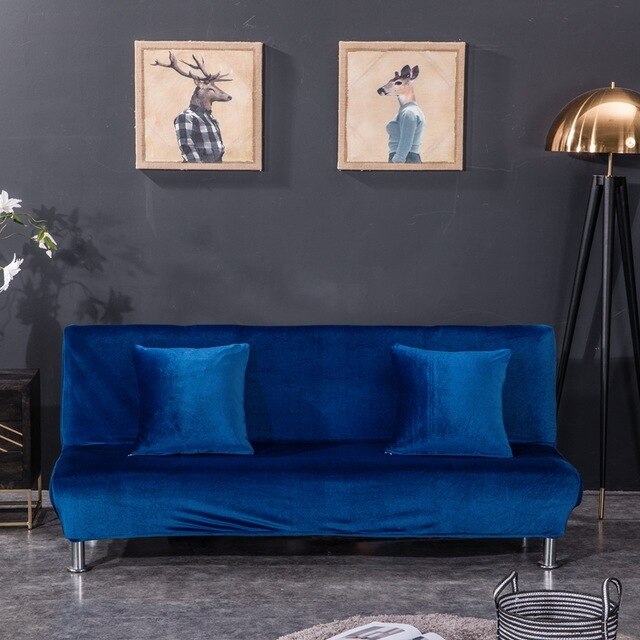 Plush Fabric Armless Sofa Bed Cover Armless Covers Universal Size Slipcovers Stretch Covers Couch Protector Elastic Bench Futon Cover