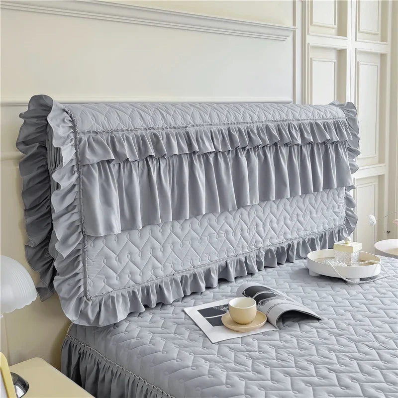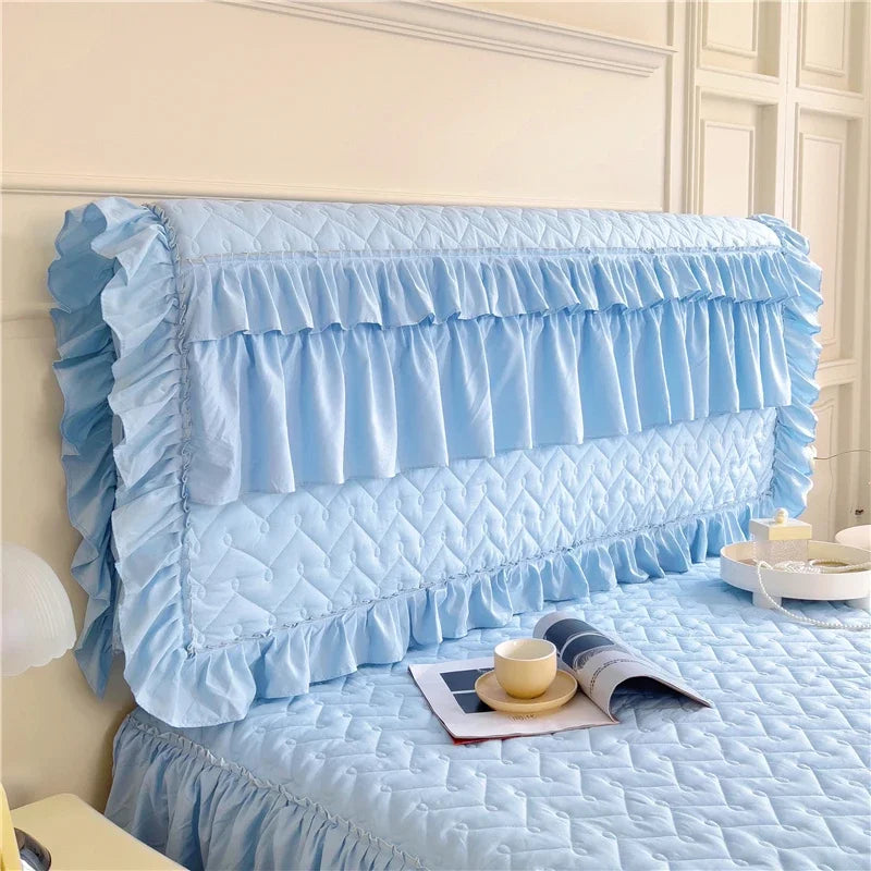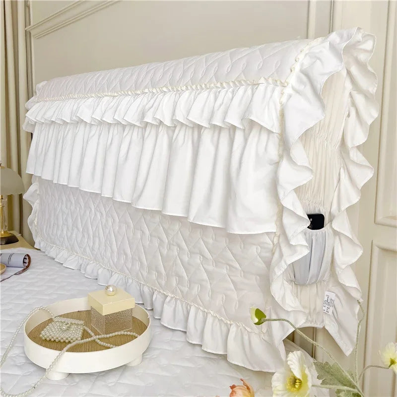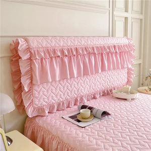Princess Style Quilted Bed Head Cover Bedside Decoration Protector Pleated Lace Solid Headboard Soft Pack Backrest Dust Covers