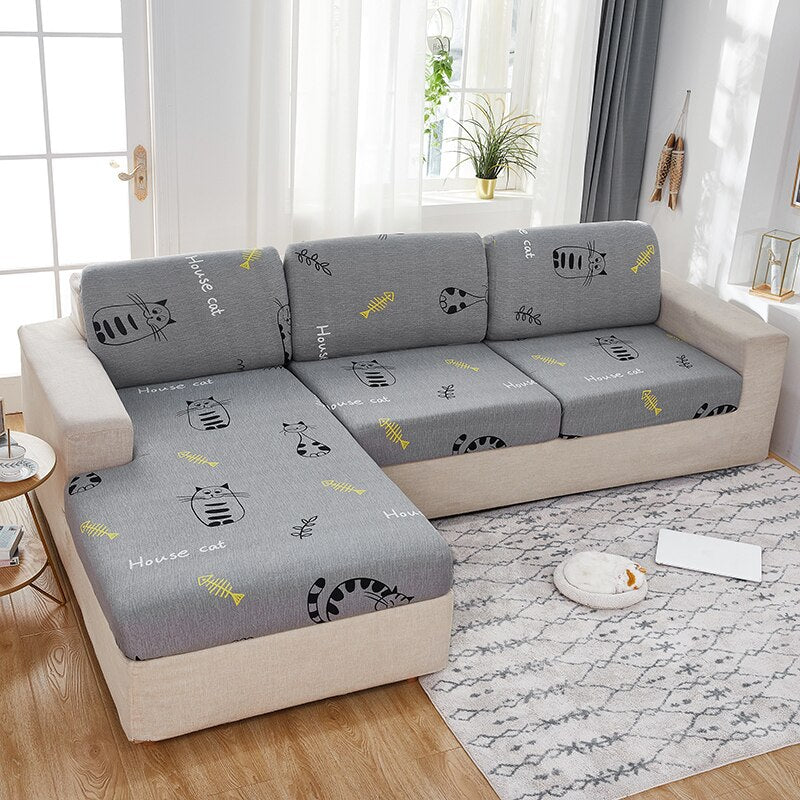 SUITABILITY OF SEAT CUSHION COVERS FOR SOFA: It's crafted from a unique extra stretchy fabric, perfect for regular square cushions, T-cushions and also L-cushions of sofa or patio cushion, used to cover not only the seat cushions of your sofa, but also the couch back cushions as long as they can be separated from the sofa.