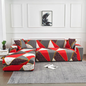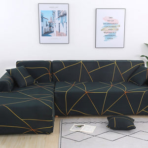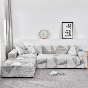 Printed Sofa Slipcover Square Pattern Couch Cover Elastic Sofa Cover for Corner Sofa Pets Chaselong Protector L shape Anti-dust Removeble