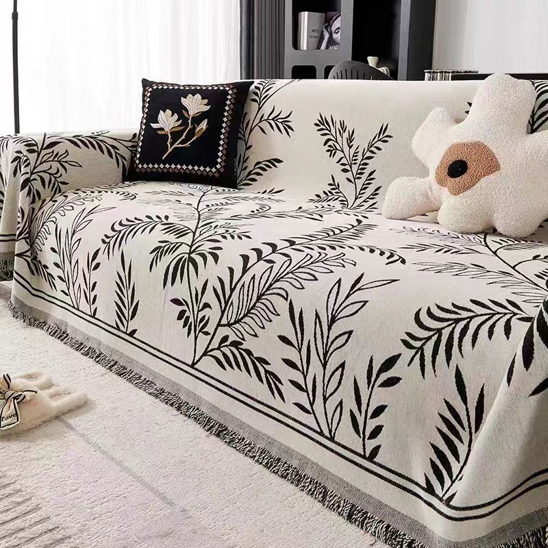 Scandinavian Willow Leaf Sofa Cover Throws Set All-Season Reversible Luxury Cat-Scratch & Dust Resistant Protector Throw