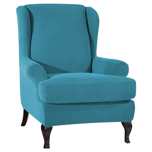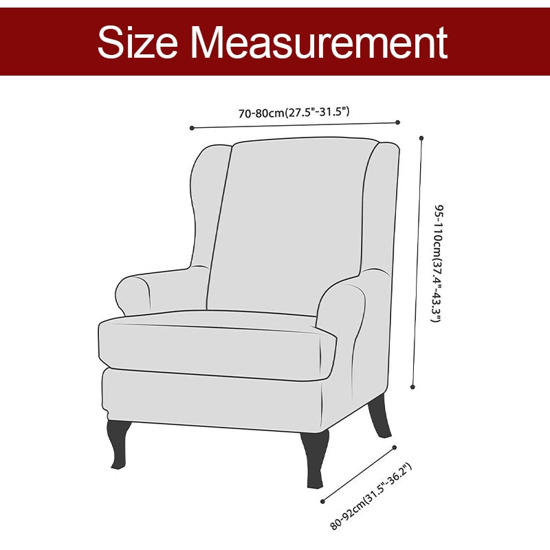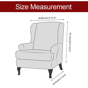 GREAT FIT: This innovated 1 Piece wing chair slipcover is crafted from durable and soft high stretch knitted jacquard fabric. Suitable for most standard wing chairs. Fit up to 30-33 inch seat wide and 45 inch tall. Best choice for T cushion and Box cushion styles