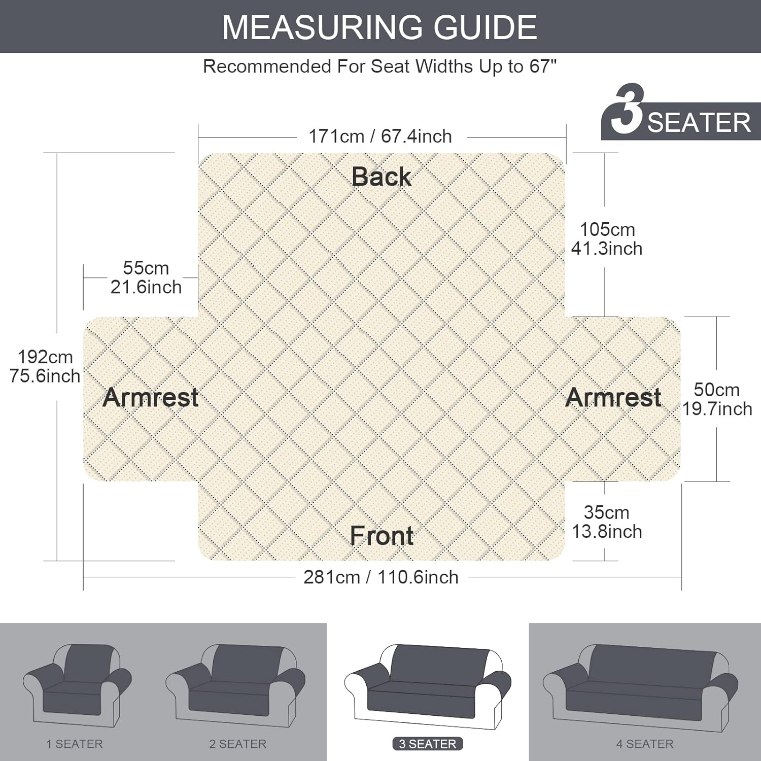 Home Sofa Covers 100% Waterproof Sofa Slipcovers 3 Seater,Non Slip Cover for Kids/Dogs/Pets,Washable Sofa Protector with Elastic Strap