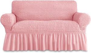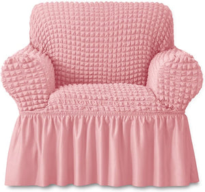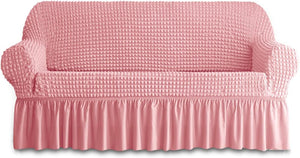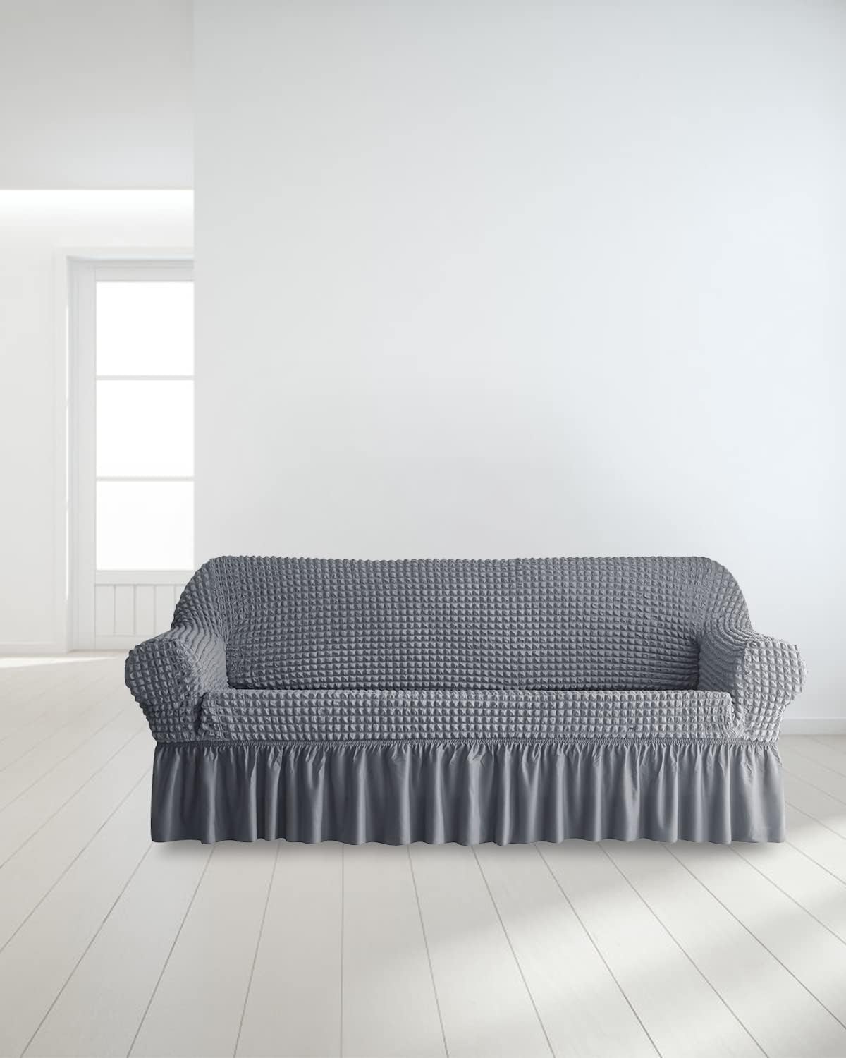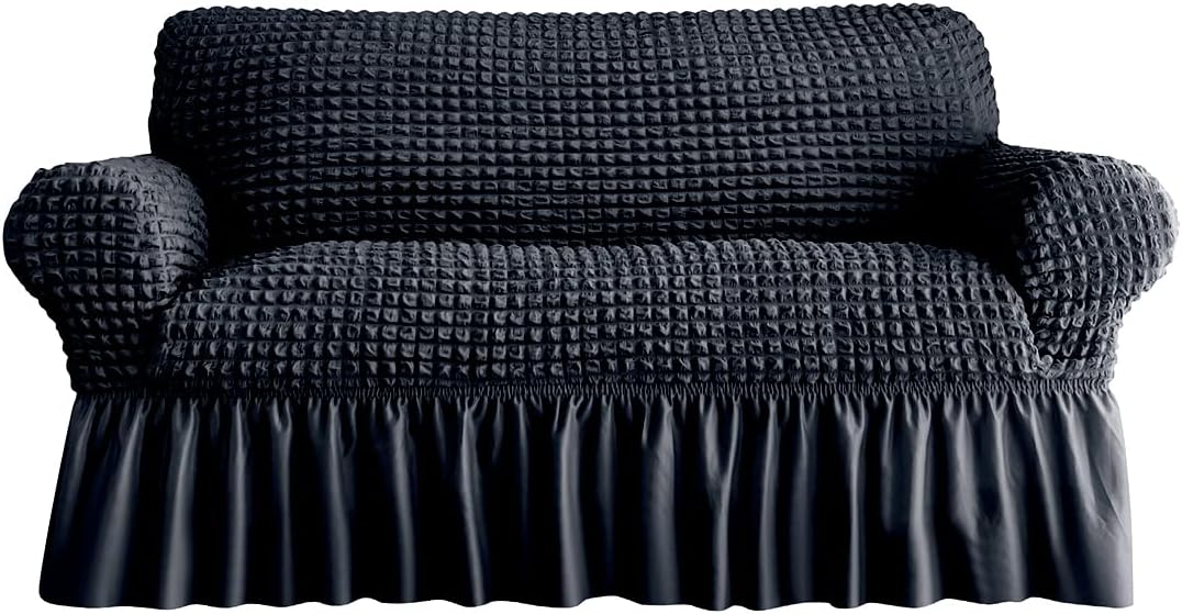 This durable and washable sofa slipcover is designed with a skirt for added elegance. The high elastic stretchable fabric is specifically made to fit a 3 seater sofa, providing a perfect and snug fit. Keep your sofa looking new and fresh while adding a touch of style to your living room.
