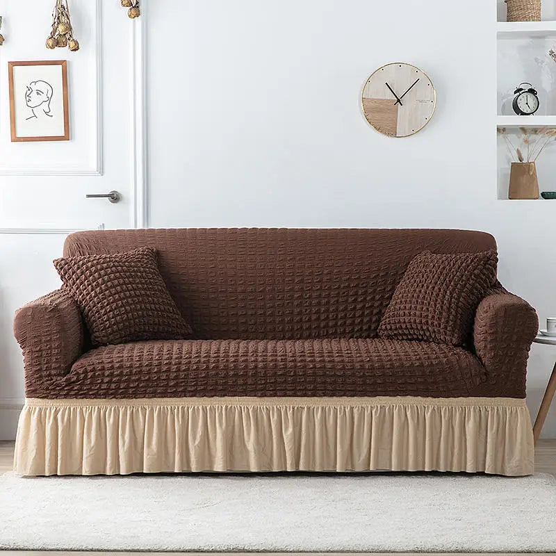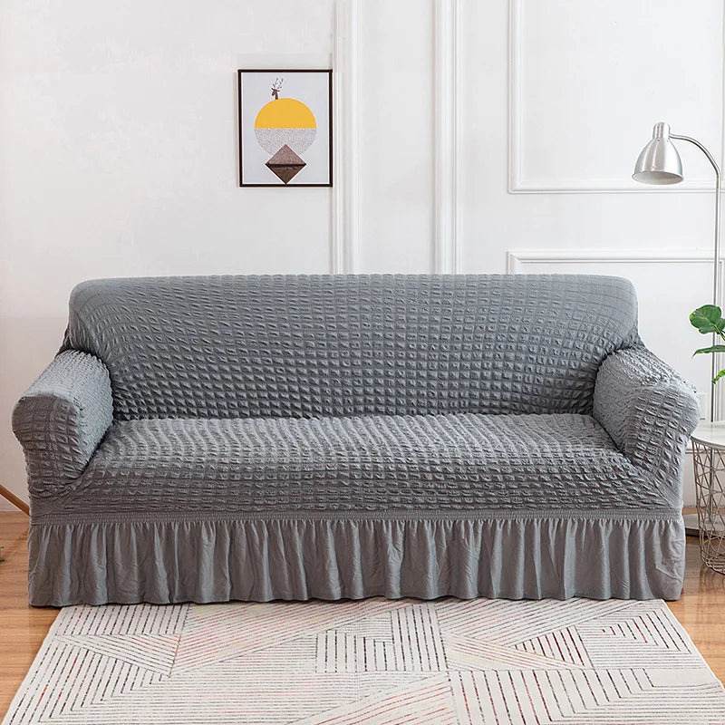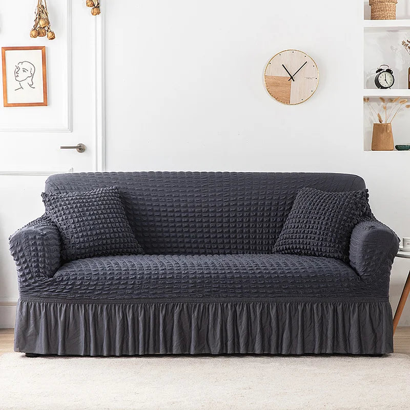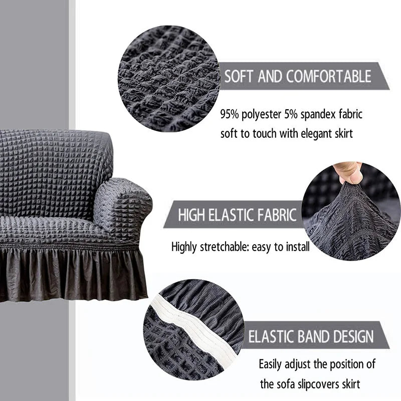 Sofa Slipcovers with Skirt is a durable and easy-to-fit sofa cover made from high elastic seersucker fabric. Its machine-washable material provides long-term protection and resists stains and fading. Perfect for the modern home, this cover gives your living area a streamlined look while adding extra comfort.
