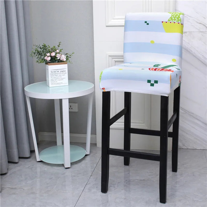 Home Solid Color Bar Stool Cover for Cafe Dining Room Stretch Printed Low Back Short Barstool Seat Protectors Chair Covers