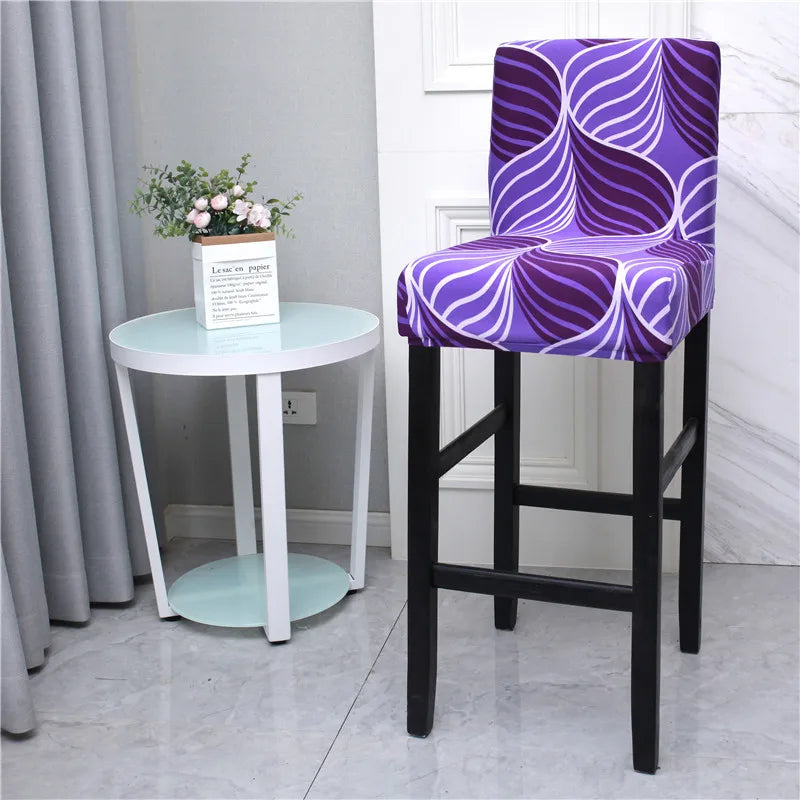 This Solid Color Bar Stool Cover not only adds a stylish touch to your cafe or dining room, but also provides protection for your barstool seats. Made with stretch fabric, it easily slips over low back chairs for a snug fit. Upgrade your seating experience with these printed chair covers.